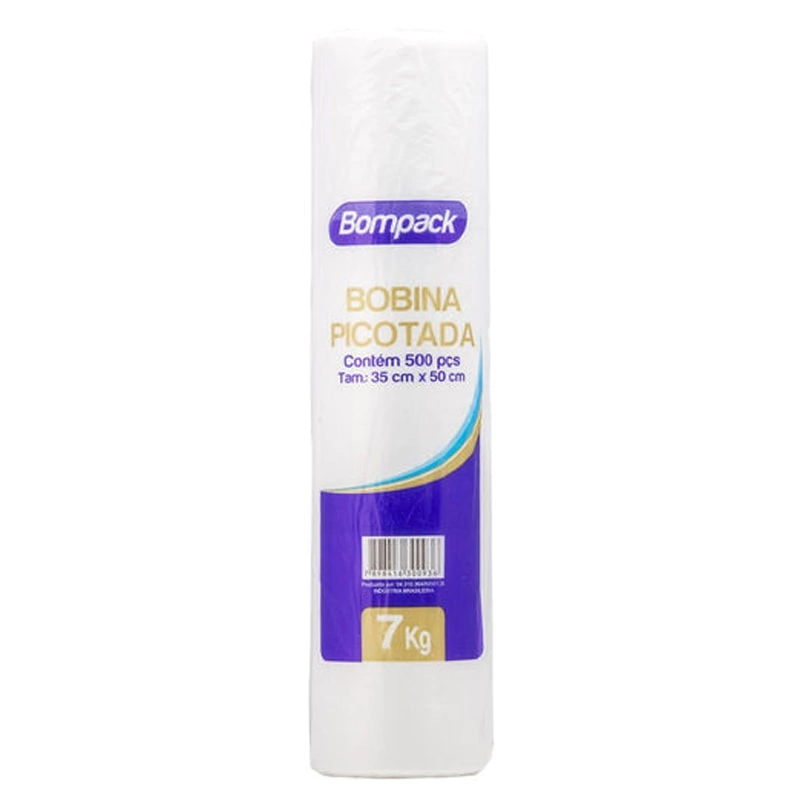 As Bobinas picotadas 35cm x 50cm c/ 500 peças, que aguenta até 7kg da Bompack são produzidas em material polietileno, que é de alta resistência para armazenar, frutas, legumes, verduras, frios e carnes em seu congelador.