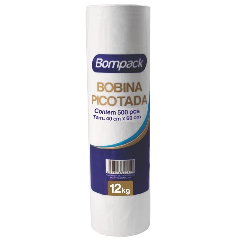 As Bobinas picotadas 40cm x 60cm c/ 500 peças, que aguenta até 12kg da Bompack são produzidas em material polietileno, que é de alta resistência para armazenar, frutas, legumes, verduras, frios e carnes em seu congelador.