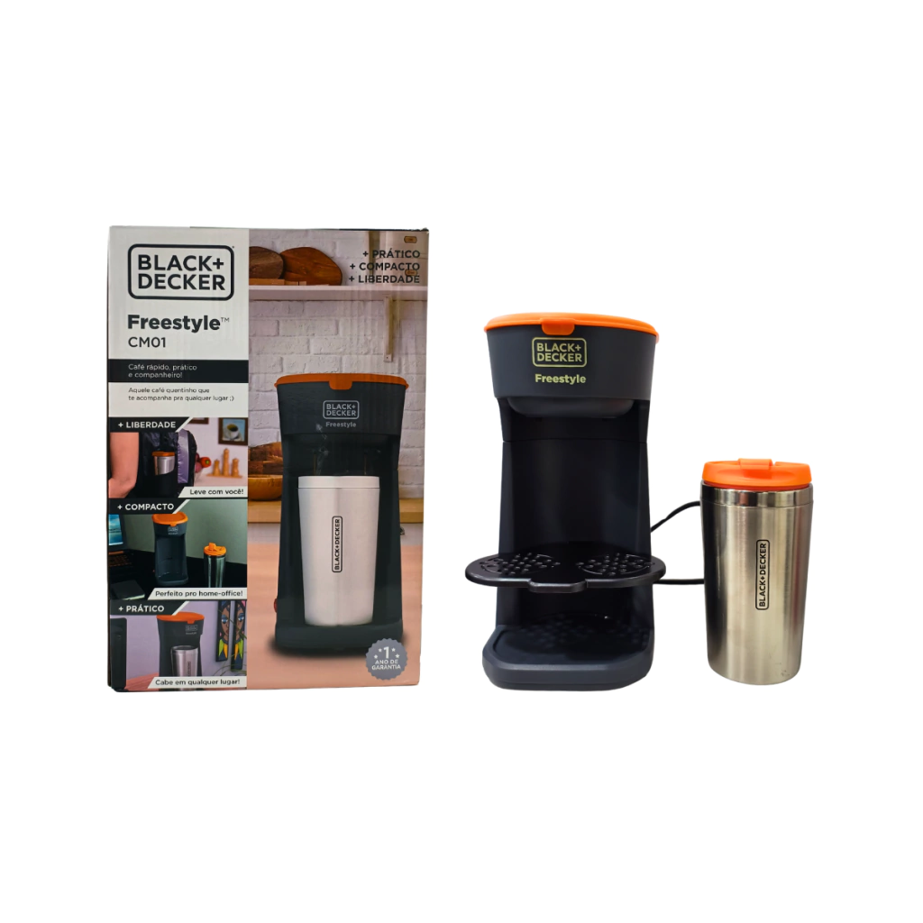 A Cafeteira Elétrica 600W 127V Individual Freestyle CM01 Black+Decker é a solução perfeita para quem busca praticidade e rapidez na hora de preparar seu café individual. Com design compacto e moderno, ela é ideal para uso doméstico, escritórios ou viagens, garantindo um café fresco e saboroso a qualquer hora do dia.