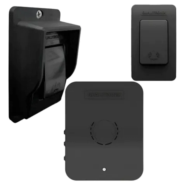 A Campainha Sem Fio QC1P da Qualitronix é um sistema prático e moderno para residências, escritórios ou estabelecimentos comerciais. Sua instalação é extremamente simples, pois não requer fiação: o transmissor (botão) funciona com bateria e o receptor (campainha) é ligado diretamente na tomada. Com alcance eficiente e diversas opções de toques, é a solução ideal para quem busca facilidade e funcionalidade sem a complicação de obras ou cabos.