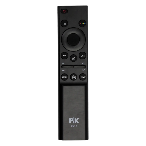 O Controle Remoto Pix 026-0047 é um controle de substituição projetado para ser compatível com a linha de Smart TVs Samsung, especialmente os modelos Slim 4K como o AU8000 (e outros modelos que utilizam controles similares). Este controle oferece as funcionalidades básicas e essenciais, incluindo teclas de atalho para os principais serviços de streaming, sendo uma alternativa econômica e prática para substituir o controle original perdido ou danificado.