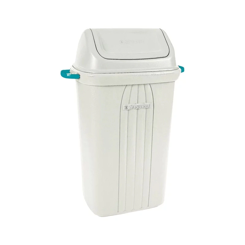 A Lixeira Basculante 60L bege, da Sanremo, tem alças largas que não machucam as mãos. A tampa basculante impede o contato direto com o lixo.