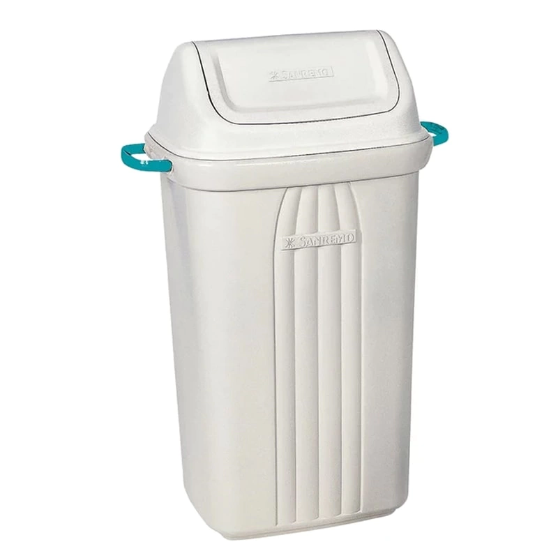 Lixeira basculante 30L Casablanca Sanremo tem alças largas que não machucam as mãos. Tampa basculante que impede o contato direto com o lixo.