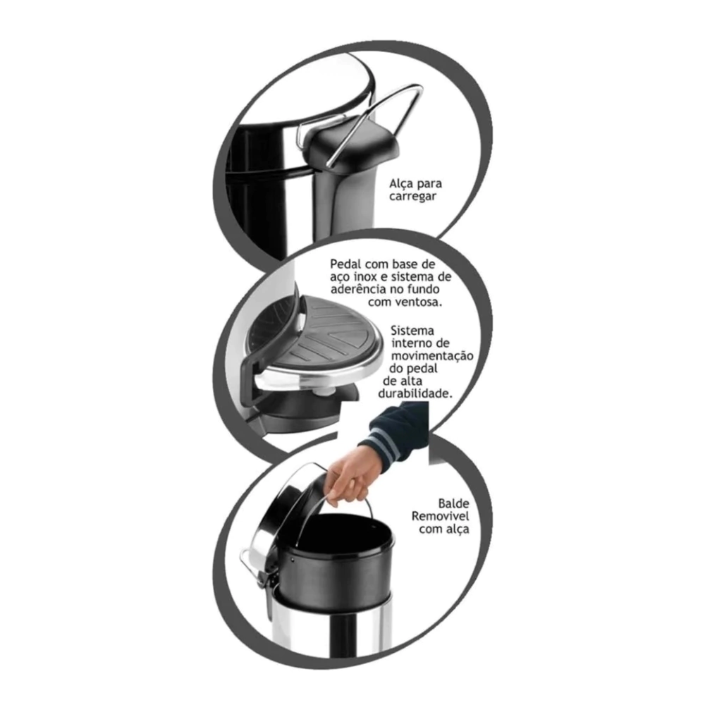 CONTEÚDO: 1 Lixeira Inox de 5 Litros.