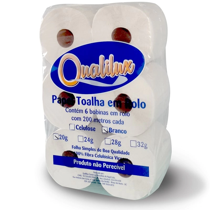 Papel Toalha Bobina 20g Branco 200m QUALILUX c/6 und