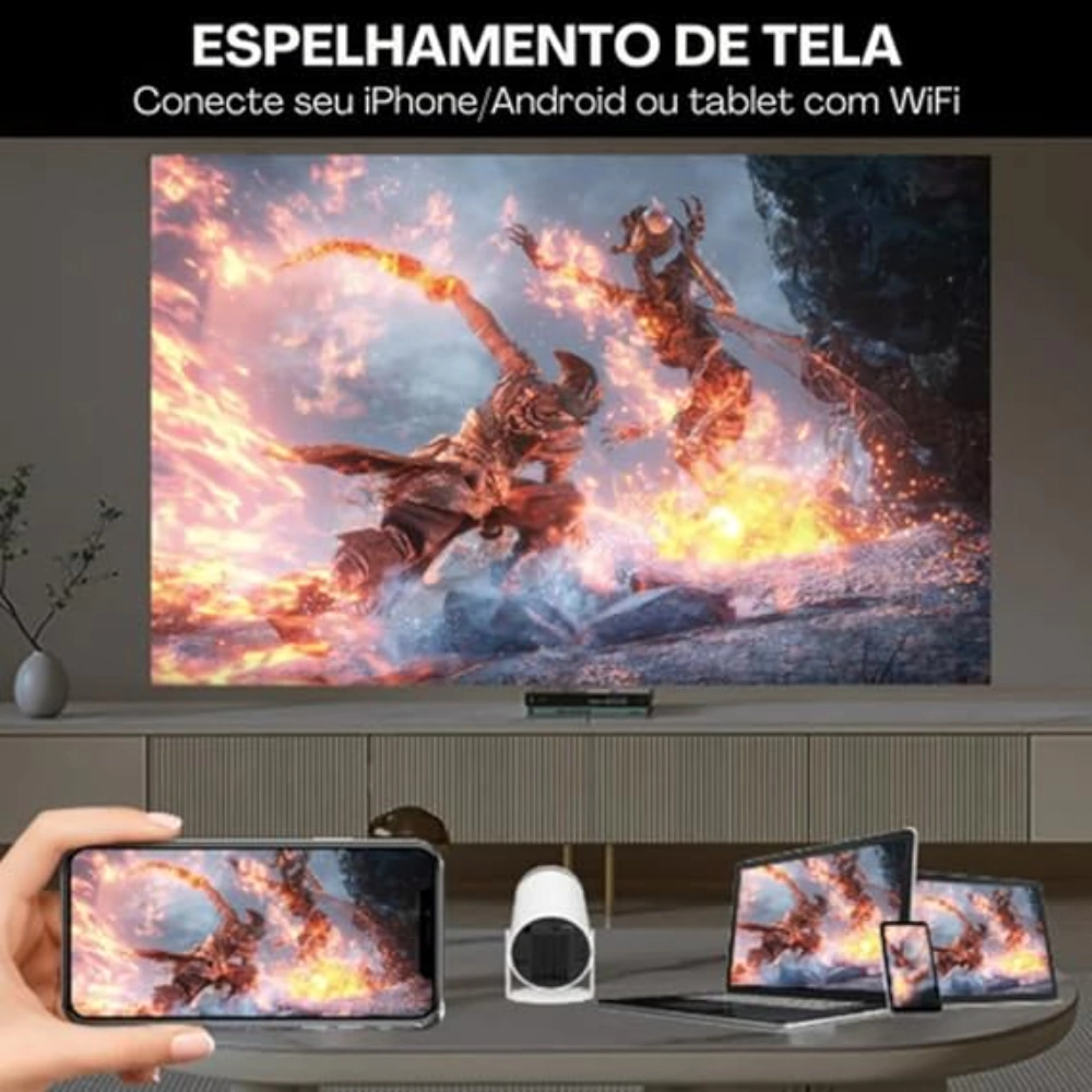 Se você deseja criar uma experiência de cinema em casa, o Projetor Hy300 Wifi HD 200ansi Android 11.0 Smart é a escolha ideal. Seu design elegante na cor branca adiciona um toque de sofisticação a qualquer ambiente.