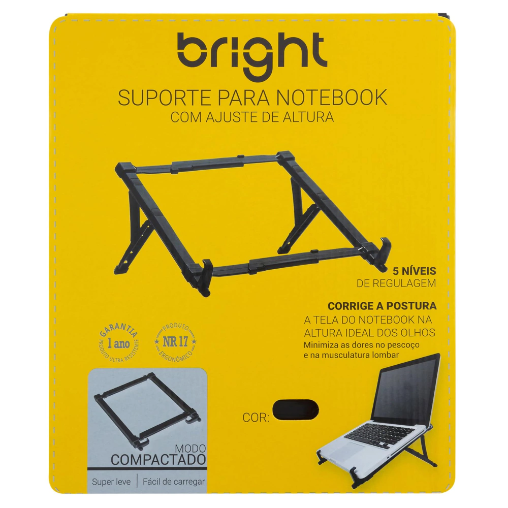 CONTEÚDO DA EMBALAGEM: 1 Suporte Notebook Regulável Bright.